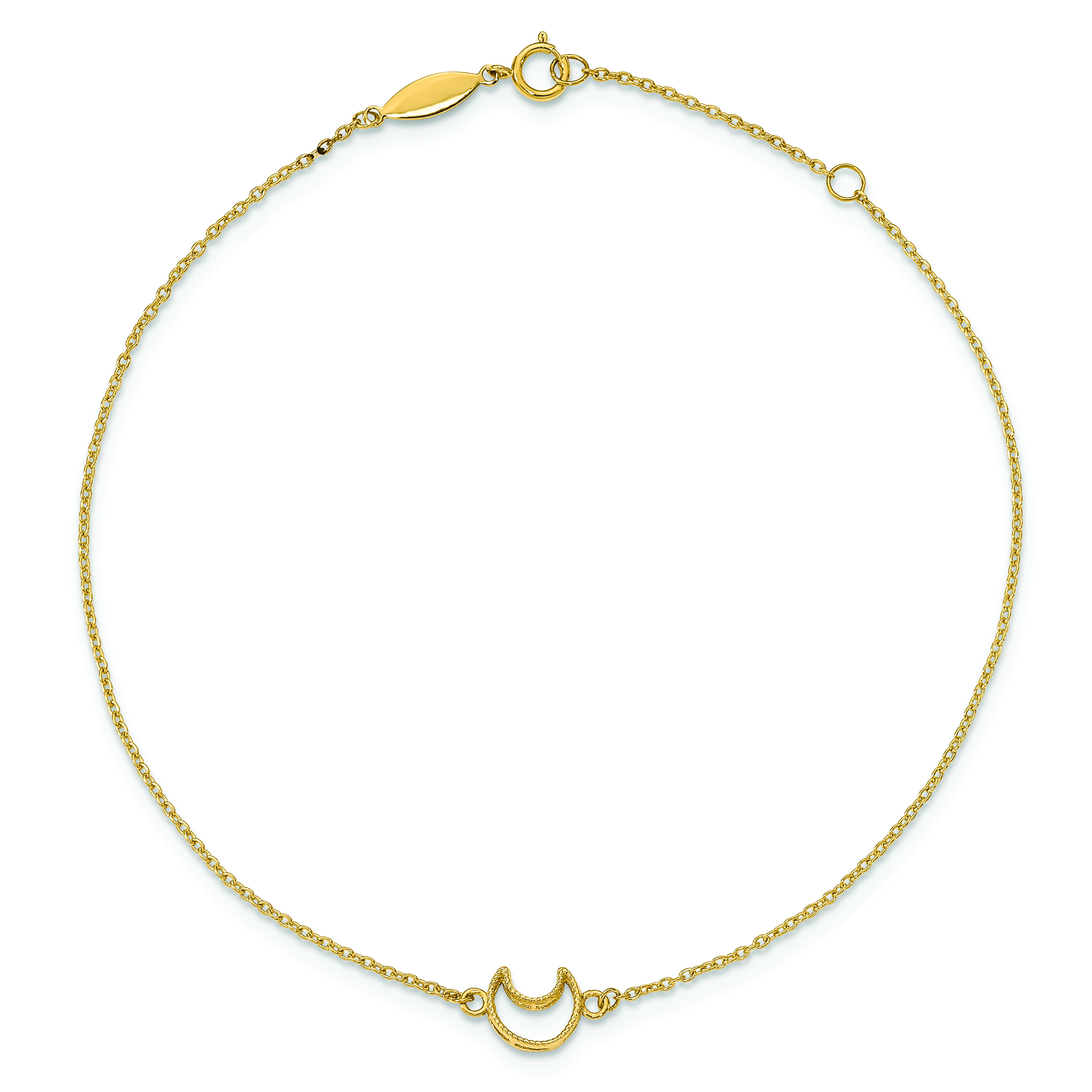 14K Gold Textured and Polished Moon 9in Plus 1in ext. Anklet
