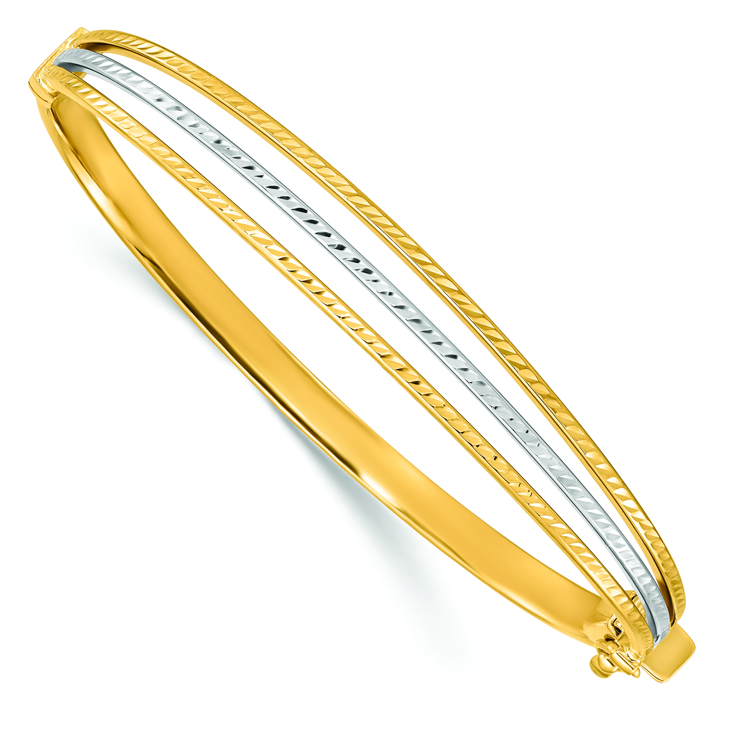 14K Two-tone 4-6.5mm Polished D/C Hinged Bangle