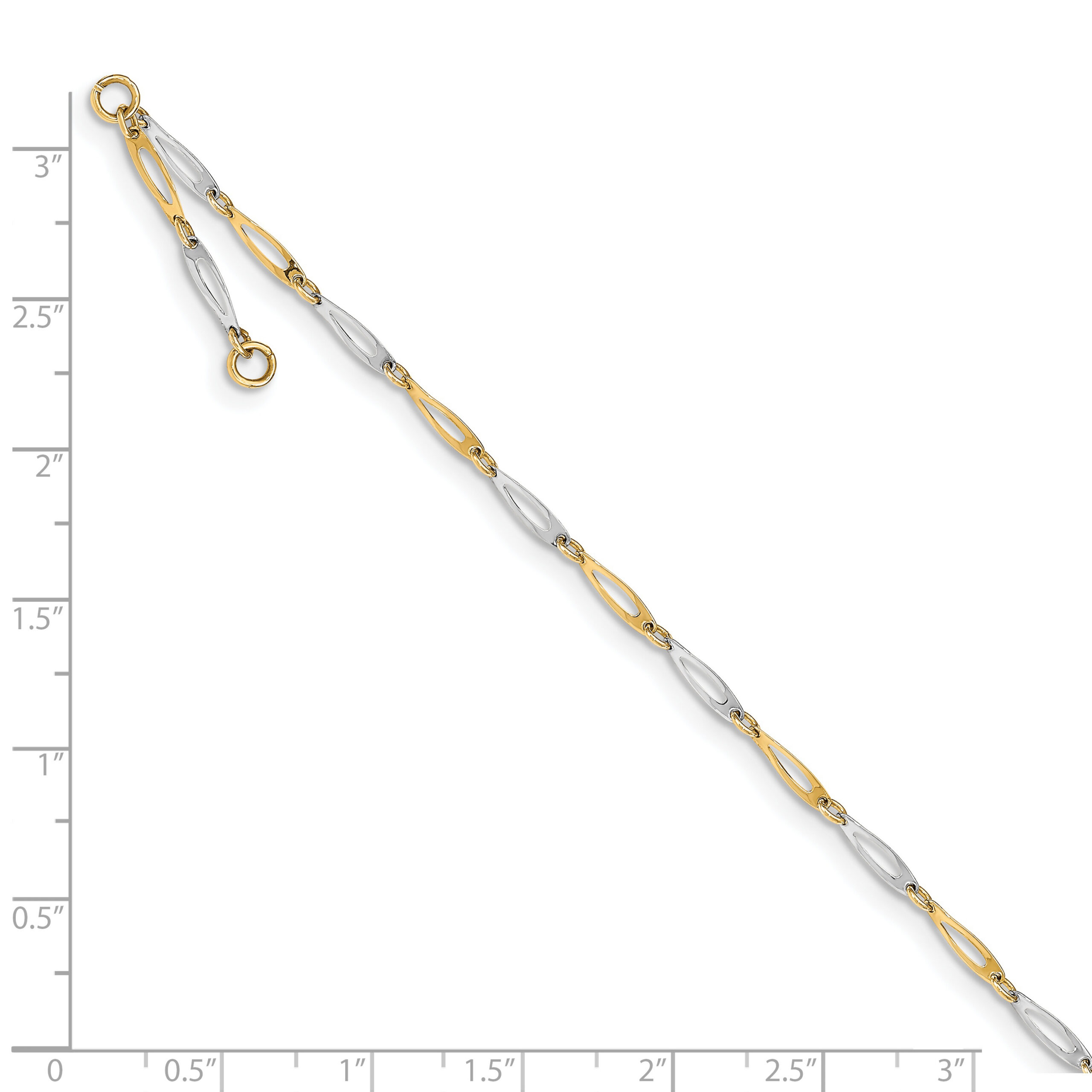 14k Two-Tone Polished Oval Twist Link 9 inch Plus 1 inch Extender – Total 10 inch Anklet
