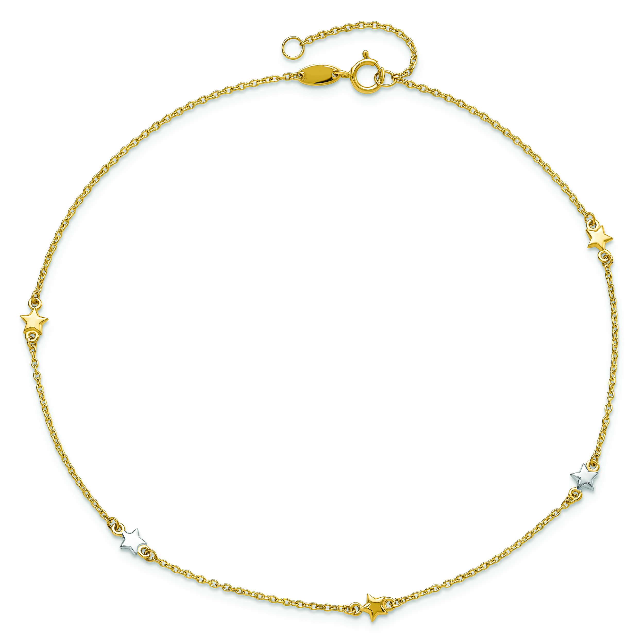 14K Two-Tone Polished Stars 5-Station 10 inch Plus 1 inch Extender – Total 11 inch Anklet