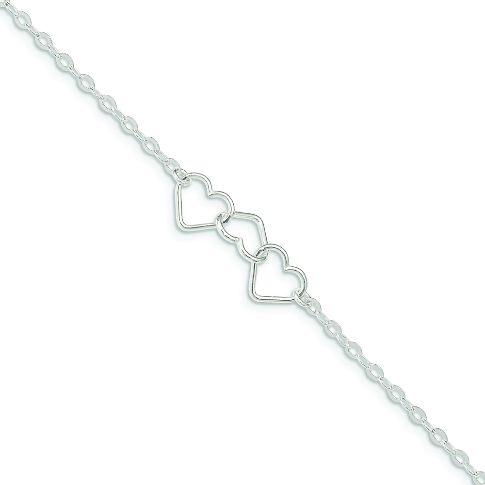 Sterling Silver 10inch Solid Polished Fancy Heart Link Anklet