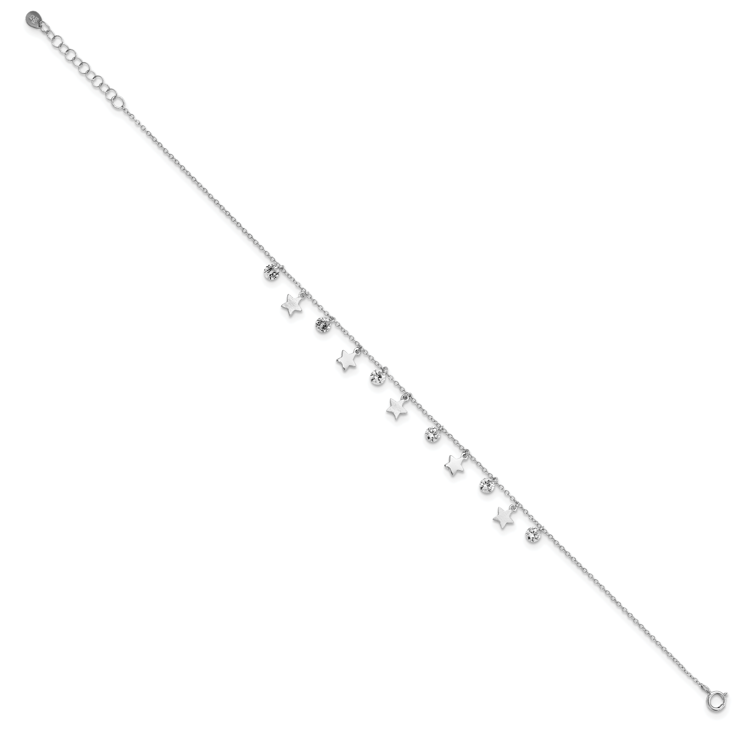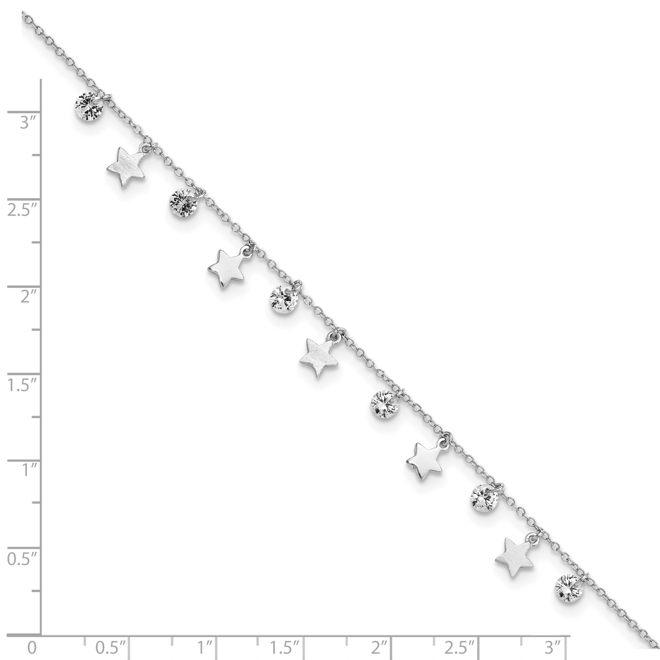 Sterling Silver Rhodium-plated Stars and CZ 9 inch Plus 1 inch Extender – Total 10 inch Anklet