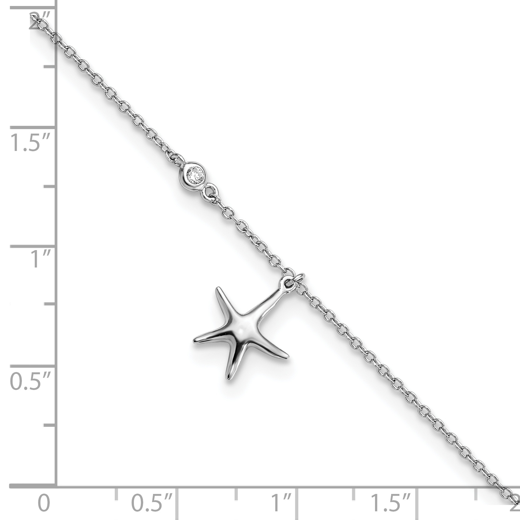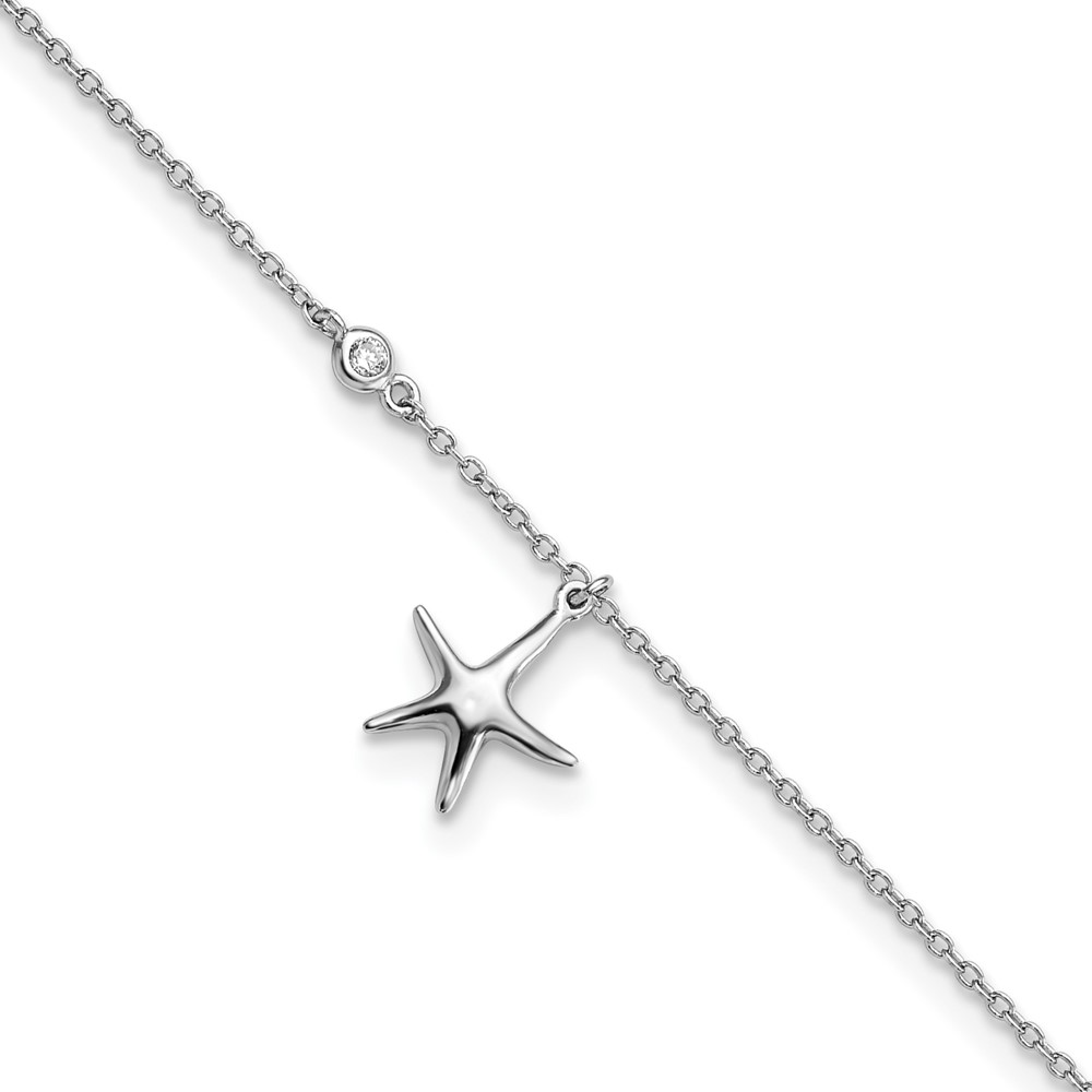 Sterling Silver Rhodium-plated CZ Starfish 9 inch Plus 1 inch Extender – Total 10 inch Anklet